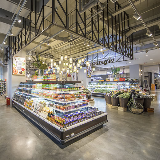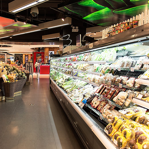超市銷售的冷凍食品和飲料多種多樣,所以需要的冰柜款式也較多。超市的蔬菜、飲料、牛奶等展示冰柜一般使用的是定制的敞開式一體立風柜,存取貨物更加方便。對于一些生鮮和速凍食品,超市一般用的是大型的島式冰柜,高端大氣,可多溫冷凍冷藏及保鮮展示。也有一些超市采用立式推拉門的冷凍柜存放速凍食品。