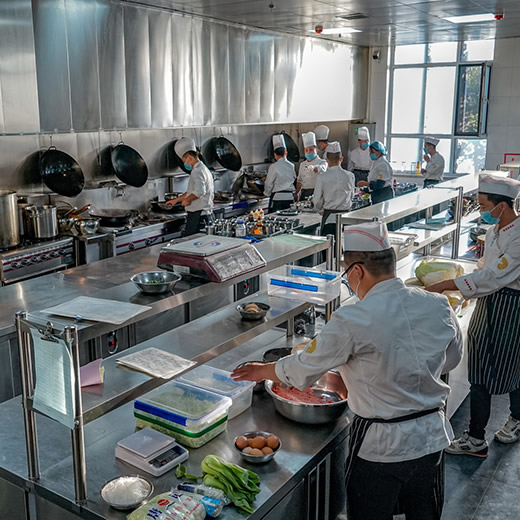 學校食堂因為要準備大量的食材,所以和一些酒店餐廳的后廚一樣,要使用不銹鋼的大型冰柜。由于用餐人數多,一般選用的是六門的冰柜,需要1~3個不等。通常冰柜也不能滿足學校食堂的需求,需要配合冷庫共同使用。